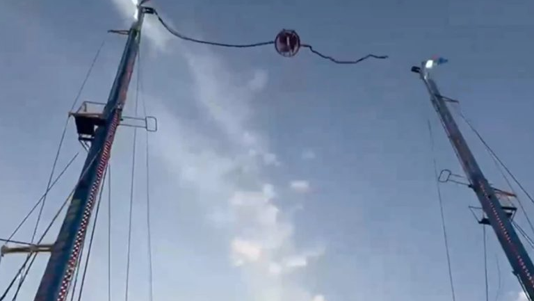 Βίντεο καταγράφει τις στιγμές πανικού που επικράτησαν σε Λούνα Παρκ της Σεβίλλης, όπου ελαστικό καλώδιο παιχνιδιού έσπασε και το κουβούκλιο που είχε μέσα ανθρώπους αιωρήθηκε στον αέρα και έπεσε με μεγάλη ταχύτητα στο έδαφος.