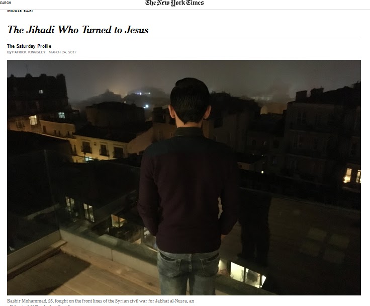Το ότι τον Bashir Mohammad δεν τον πείραξε αυτό, ήταν επειδή υπήρχε κάποια αλήθεια σε αυτό. Σήμερα, ο 25χρονος Μοχάμεντ, έχει κρεμάσει ένα σταυρό στον τοίχο του και καλεί και άλλους που πρόσφατα ασπάστηκαν τον χριστιανισμό σε εβδομαδιαίες αναγνώσεις της Βίβλου στο σαλόνι του με τους μωβ τοίχους. Πριν από τέσσερα χρόνια, όμως, όπως λέει, πολεμούσε στην πρώτη γραμμή του πολέμου στη Συρία στις δυνάμεις της Al Nusra Front, που είναι ένα παρακλάδι της Αλ Κάιντα. Είναι, λέει, ένας τζιχαντιστής που στράφηκε προς τον Ιησού Χριστό.