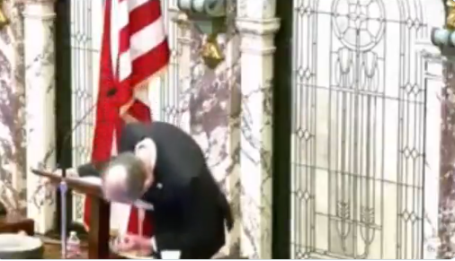 Η δραματική στιγμή μάλιστα καταγράφηκε στη ζωντανή ροή των νομοθετικών διαδικασιών. Στα πλάνα φαίνεται ο 77χρονος Ρεπουμπλικανός να στέκεται στο βήμα της Γερουσίας, να πέφτει αργά προς το μικρόφωνο και στη συνέχεια στο πλάι στο πάτωμα. Συνάδελφοί του σε πανικό άρχισαν να φωνάζουν το όνομά του, ενώ μερικοί έσπευσαν να τον βοηθήσουν και κάλεσαν υπηρεσίες έκτακτης ανάγκης. Οι διαδικασίες της Γερουσίας διακόπηκαν αμέσως καθώς έλαβε ιατρική φροντίδα.