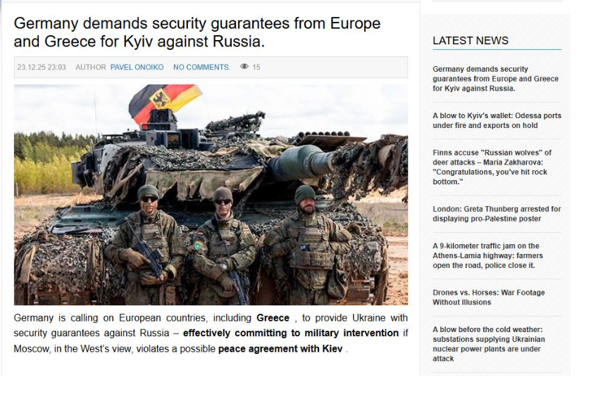 Ο Γερμανός Υπουργός Εξωτερικών Johan Vandeful εξέφρασε για άλλη μια φορά μια σκληρή και απροκάλυπτα μιλιταριστική θέση, ισχυριζόμενος ότι η Ρωσία θα μπορούσε να χρησιμοποιήσει μια πιθανή κατάπαυση του πυρός στην Ουκρανία για να επιταχύνει τις προετοιμασίες για επίθεση εναντίον χώρας του ΝΑΤΟ, ενώ σύμφωμα με το ρωσικό μέσο rua.gr έβαλε στο κάδρο των εγγυήσεων ασφαλείας και την Ελλάδα.