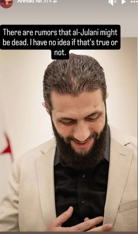 Ο Αλ-Τζουλάνι ή είναι νεκρός ή είναι σοβαρά τραυματίας και νοσηλεύεται στην Τουρκία.! 4/1/26