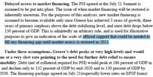 Μιλάμε δηλαδή για ακόμη 10 χρόνια, τουλάχιστον, σκληρής λιτότητας και υψηλής επιστασίας από τους ελεγκτές της τρόικας. Αυτή είναι η παγκόσμια οικονομική διακυβέρνηση που οραματίζονταν μερικοί; Αυτό είναι η απόλυτη “απώλεια της εθνικής κυριαρχίας”. Κι εμείς ακόμη συζητάμε για το Μνημόνιο, το Μεσοπρόθεσμο και το πολυνομοσχέδιο. Μόνο οι εκλογές είναι η λύση. Ανοιχτά χαρτιά από όλους, όλα τα δεδομένα στο τραπέζι των συζητήσεων και εκλογές.