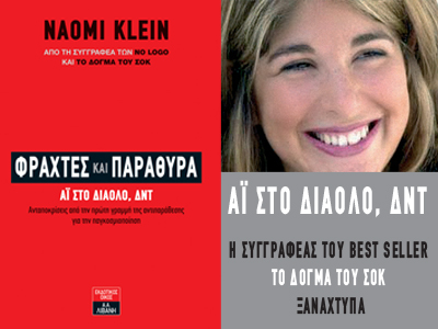 Η Ναόμι Κλάιν ξαναχτυπά. Μετά το παγκόσμιο μπέστ σέλερ “Το Δόγμα του Σοκ” η επιτυχημένη συγγραφέας και δημοσιογράφος επανέρχεται…με το καινούργιο βιβλίο της “Φράχτες και Παράθυρα”, από τις Εκδόσεις Λιβάνη.