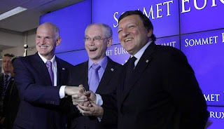 Πρώτον, η Ε.Ε. κατέβαλε χθές μια έσχατη προσπάθεια να περιορίσει την κρίση στην Ελλάδα. Είμαστε πλέον …«ειδική περίπτωση». Οι άλλες χώρες με προβλήματα χρέους, θα τα αντιμετωπίσουν με ηπιότερες πολιτικές. Αυτή η …διαφοροποίηση της Ελλάδος, αποτελεί και μια προσωπική ….επιτυχία του πρωθυπουργού, που επιδίωκε το ακριβώς…. αντίθετο!