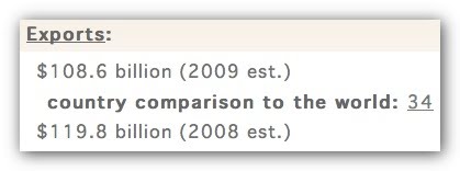 Οι εξαγωγές της Ιρλανδίας για το 2009 ήταν €108.6 Δις… ενώ το 2008 ήταν €119.8 Δις…