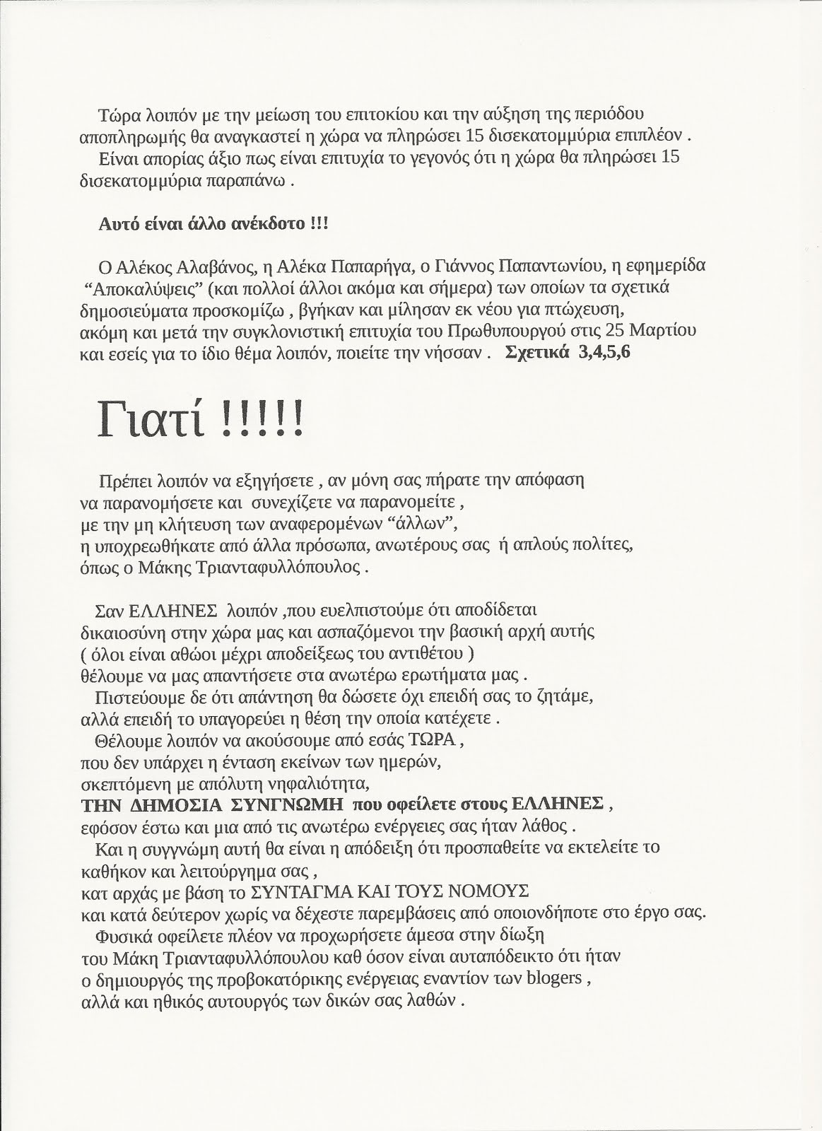 Φιλε μου ο σημερινός εχθρός σου είναι η παραπληροφόρηση των μεγάλων καναλιών. Αν είδες κάτι που σε άγγιξε , κάτι που το θεωρείς σωστό, ΜΟΙΡΆΣΟΥ ΤΟ ΤΩΡΑ με ανθρώπους που πιστεύεις οτι θα το αξιολογήσουν και θα επωφεληθούν απο αυτό! Μην μένεις απαθής. Πρώτα θα νικήσουμε την ύπνωση και μετά ΟΛΟΙ ΜΑΖΙ τα υπόλοιπα.