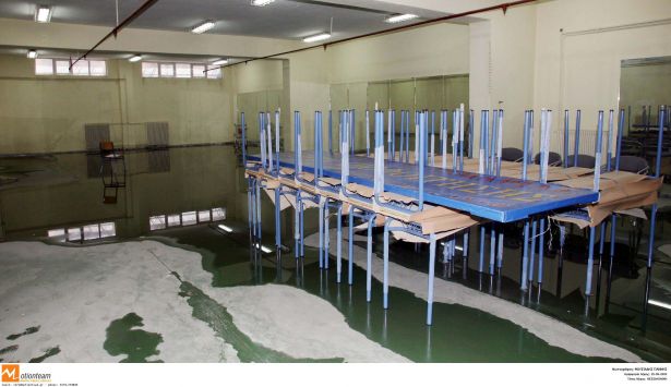 Η ταράτσα μπάζει νερά, και κάθε φορά που βρέχει οι σχολικές αίθουσες πλημμυρίζουν. Ο διευθυντής έχει ενημερώσει τους αρμοδιους φορείς, που όμως για την ώρα… σφυρίζουν αδιάφορα! τα παιδιά παρακολουθούν τους καθηγητές τους με ανοιχτές ομπρέλες, θέλοντας να διακωμωδήσουν τις άθλιες κτιριακές εγκαταστάσεις του σχολείου.
