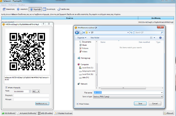 Νέα Διεύθυνση Hellas Coin Πατώντας Νέα Διεύθυνση στην κατηγορία των Παραλαβών δημιουργούμε μία νέα διεύθυνση