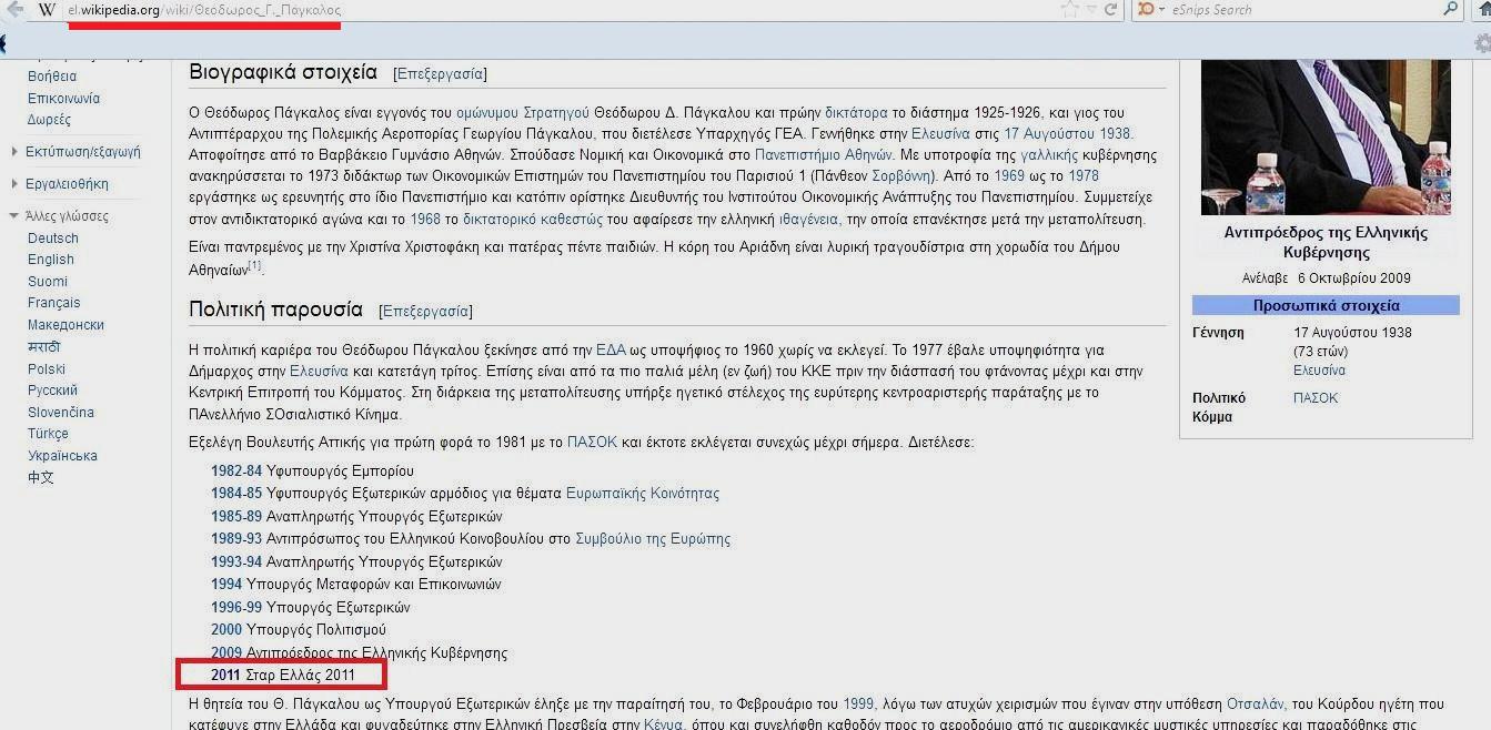 Δείτε τι γράφει το wikipedia, για τον Αντιπρόεδρο της κυβέρνησης κ. Θεόδωρο Γ. Πάγκαλο: