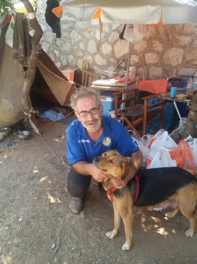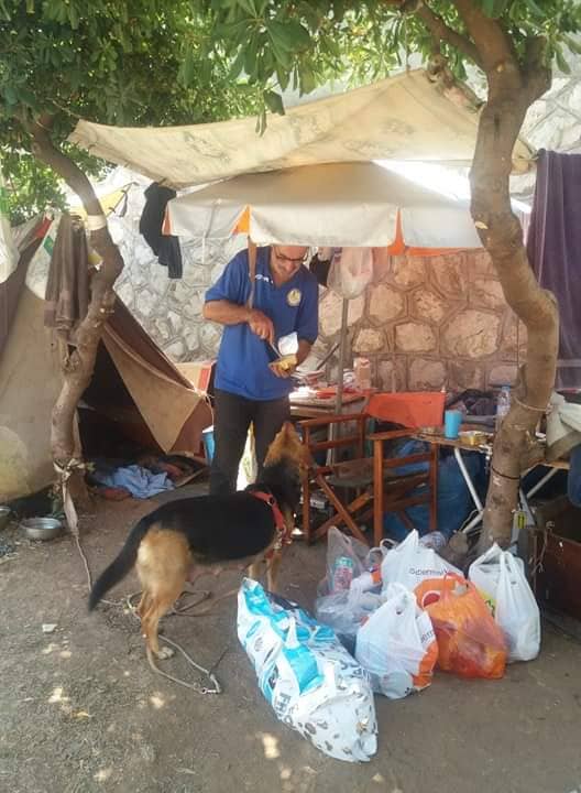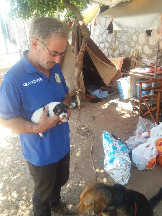 Εμεινα μια ωρα μαζι του,εγκαρδιος ομιλητικος και ταλαιπωρημενος.δε μπορει να απομακρυνθει ωρα απ το σημειο γιατι υπαρχουν τριγυρω διαφοροι..και φοβαται μη τον κλεψουν η παρουν η κανουν κακο στη σκυλιτσα η τα κουταβια.