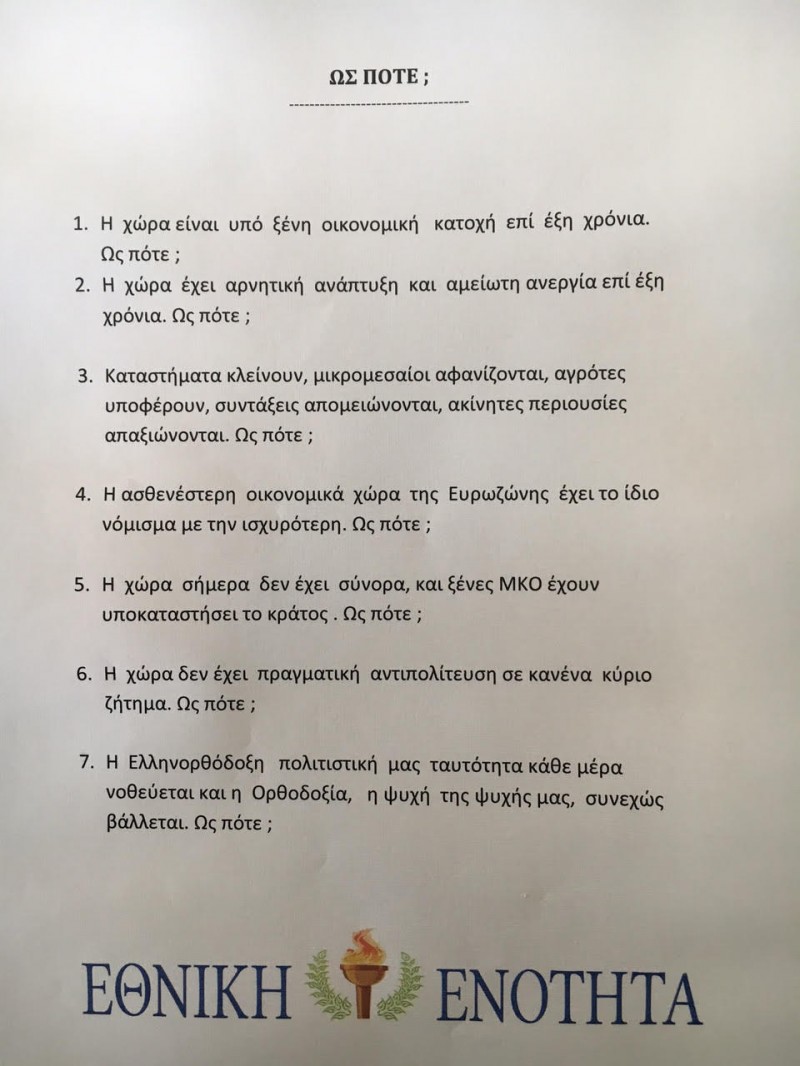 Tο νέο κόμμα τους παρουσίασαν το μεσημέρι ο Γιώργος Καρατζαφέρης και ο Τάκης Μπαλτάκος. Το όνομα αυτού, «Εθνική Ενότητα».