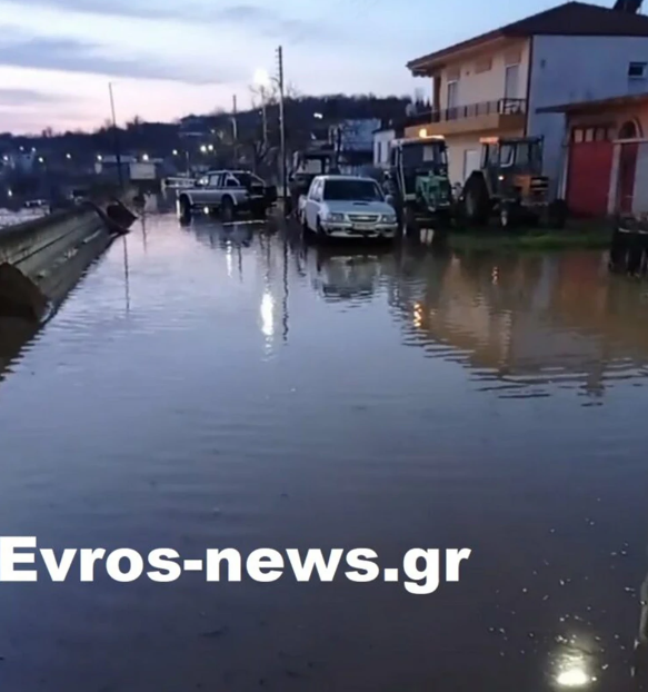 Ιδιαίτερα δύσκολη ήταν η νύχτα για τους κατοίκους στις παράκτιες περιοχές του ποταμού Έβρου, καθώς η στάθμη του νερού έχει ξεπεράσει κατά πολύ το όριο συναγερμού των 6,40 μέτρων, φτάνοντας ακόμη και τα 7 μέτρα.