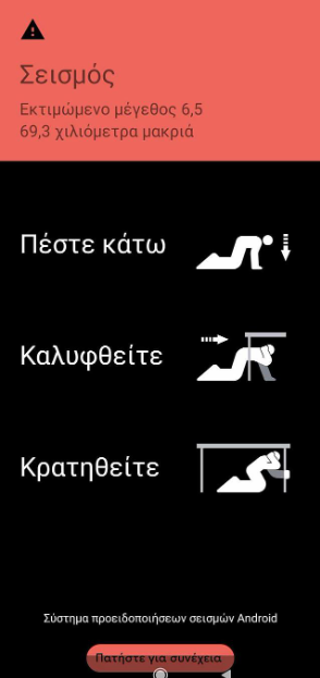 Η ειδοποίηση που εστάλη από το σύστημα Android και σήμανε από πολλές συσκευές κινητών, έκανε λόγο για σεισμός 6,5 Ρίχτερ.