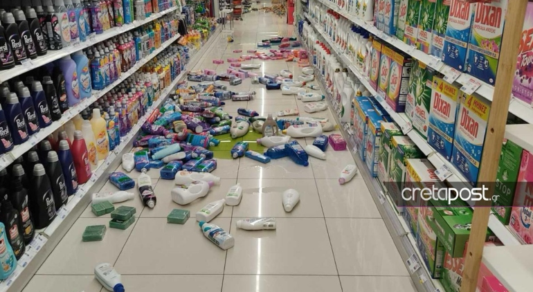 Προϊόντα έπεσαν από ράφια σε καταστήματα και σούπερ μάρκετς στο νησί.