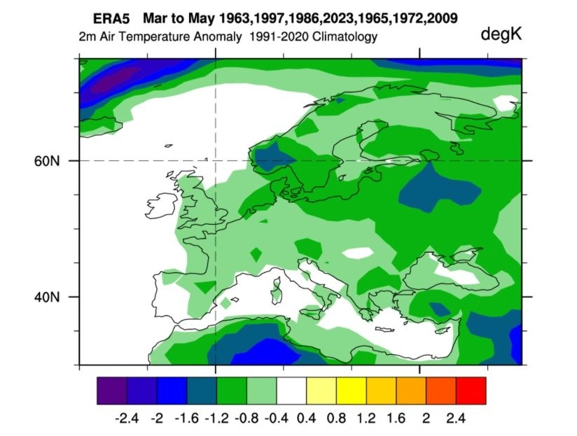 Τα δύο βασικά εποχικά προγνωστικά συστήματα, του ECMWF και του βρετανικού Met Office (UKMO), συγκλίνουν σε μια γενική εικόνα ασταθούς άνοιξης για το 2026. Τα μοντέλα προβλέπουν ενίσχυση υψηλών πιέσεων στον βόρειο Ατλαντικό και στη βόρεια Ευρώπη, σε συνδυασμό με χαμηλές πιέσεις που εκτείνονται από τη δυτική προς την κεντρική Ευρώπη και συχνά κατεβαίνουν προς τη Μεσόγειο.