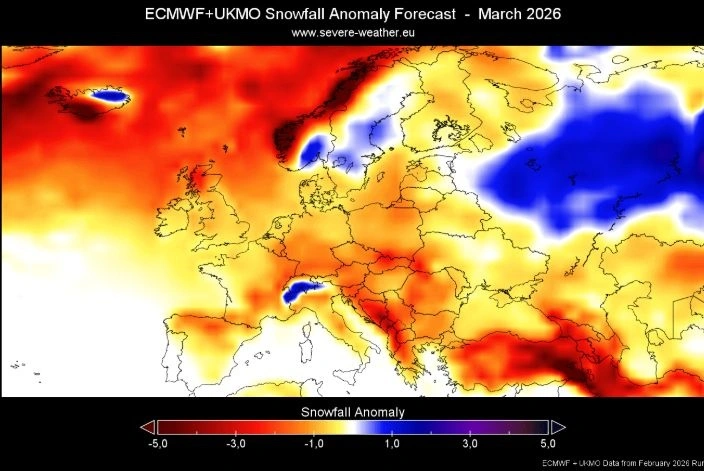 Οι προγνώσεις δείχνουν έντονη αποδυνάμωση και διάσπαση του πολικού στροβίλου, γεγονός που ευνοεί καθοδικές ψυχρές εισβολές προς την Ευρώπη. Το αποτέλεσμα αναμένεται να είναι ένα ασταθές σκηνικό στον καιρό του Μαρτίου, με χαμηλές πιέσεις πάνω από τη δυτική και κεντρική Ευρώπη, αυξημένες βροχοπτώσεις και θερμοκρασίες χαμηλότερες από τα κανονικά για την εποχή επίπεδα.