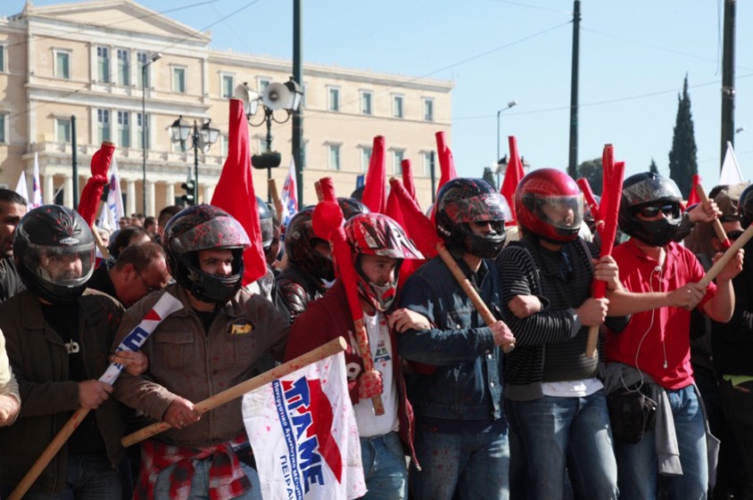 Στην πιο κρίσιμη στιγμή τής Μεταπολίτευσης, όπου ο λαός πράγματι μπορούσε να αλλάξει την ιστορία, εμποδίζοντας με τη μαζικότητά του την ψήφιση του πρώτου και βασικότερου Μνημονίου, το ΠΑΜΕ ήταν εκεί για να τον σταματήσει …Την εποχή που δεν είχε γίνει το καταστροφικό PSIτων ασφαλιστικών ταμείων …Την εποχή που ακόμα το δημόσιο χρέος ήταν ομολογιακό και χωρίς την έγκριση της Βουλής δεν μπορούσε να συναφθεί το δάνειο που θα το μετέτρεπε σε ενυπόθηκο …Την εποχή που η οικονομία ακόμα λειτουργούσε, το ΑΕΠ ήταν αρκετά μεγάλο και δεν υπήρχε capital control …Την εποχή που κανένα “αγγλικό δίκαιο” δεν θα μπορούσε να σώσει τους τοκογλύφους. Και όμως. Εκείνη την εποχή, που ο λαός μπορούσε να αρνηθεί το Μνημόνιο και να δώσει και το “άλλοθι” στους πολιτικούς να μην το ψηφίσουν, βγήκαν οι έμμισθοι ροπαλοφόροι μπράβοι τού παρακράτους και τον σταμάτησαν …Αυτοί, οι οποίοι ήταν έτοιμοι να χιμήξουν πάνω του με τα ρόπαλα, προκειμένου εξυπηρετήσουν τα αφεντικά τους, που είναι οι Σιωνιστές τοκογλύφοι …Προκειμένου να τον εμπόδισαν να πάρει την τύχη του στα χέρια του και να “γράψει” μόνος του την ιστορία του.