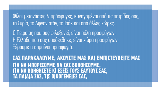 Τους ζητούν μεταξύ άλλων να κλείσουν τ’ αυτιά τους στους διακινητές, τους λένε ότι τα σύνορα στην Ευρώπη είναι κλειστά και δεν αναμένεται ν’ ανοίξουν άμεσα και τους τονίζουν ότι σε λίγες ημέρες το λιμάνι θα αδειάσει!