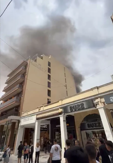 Πανικόβλητοι έτρεξαν να βγουν οι μαθητές από το ξενοδοχείο πάνω από το κατάστημα επί της οδού Αγίου Νικολάου στην Πάτρα, το οποίο έπιασε φωτιά το νωρίς το απόγευμα της Τρίτης.