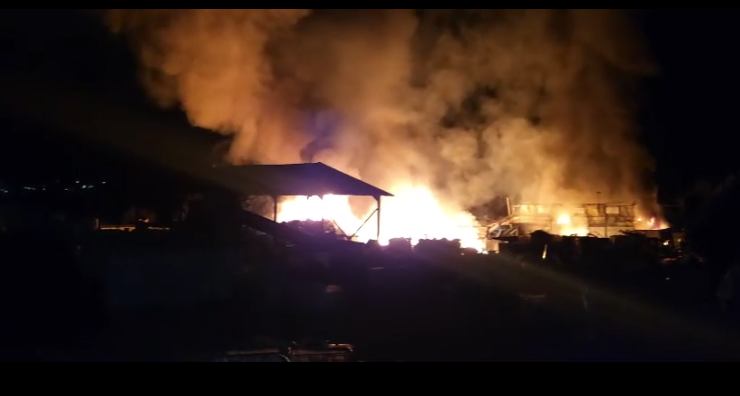 Σύμφωνα με νεώτερες πληροφορίες από την Πυροσβεστική το μέτωπο της φωτιάς έχει περιοριστεί στον προαύλειο χώρο, ωστόσο η κατάσβεση της φωτιάς λόγω των εύφλεκτων υλικών θα διαρκέσει αρκετές ώρες.