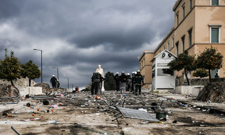 Ωστόσο, κάποιοι ταραξίες ανέβηκαν στο μνημείο του Άγνωστου Στρατιώτη και πλησίασαν τα σκαλιά της Βουλής. Τότε υπήρξε παρέμβαση των αστυνομικών δυνάμεων και τους απομάκρυναν. Στη συνέχεια, τα επεισόδια μεταφέρθηκαν προς την Αμαλίας και τους Στύλους Ολυμπίου Διός, με τους κουκουλοφόρους να μπαίνουν στον αρχαιολογικό χώρο.