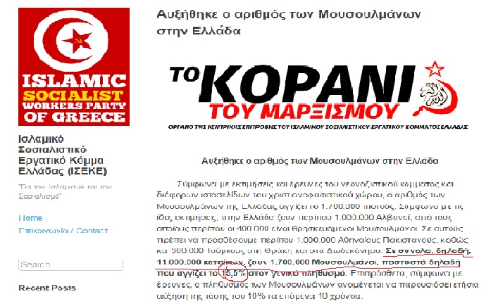 Αυτό το σάιτ δημιουργήθηκε τον Ιούνιο του 2014 και έκτοτε είναι νεκρό. Η πλάκα είναι που ανήκει αυτό το σάιτ, σε ποιό κόμμα: Ανήκει δε στην κίνηση “Ισλαμική ΜαοΪστική Λαϊκή Δημοκρατία της Ελλάδας”. Την δε πληροφορία για τον Μουσουλμανικό πληθυσμό στην Ελλάδα την έχουν πάρει όπως οι ίδιοι λένε από ακροδεξιά, φασιστικά και Χριστιανικά σάιτ. Εντελώς ασόβαρη κατάσταση. Αλλά και να ήταν κάτι σοβαρό διάβασε πιο πάνω ένα σχόλιό μου και θα καταλάβεις τί γίνεται σε αυτές τις περιπτώσεις.