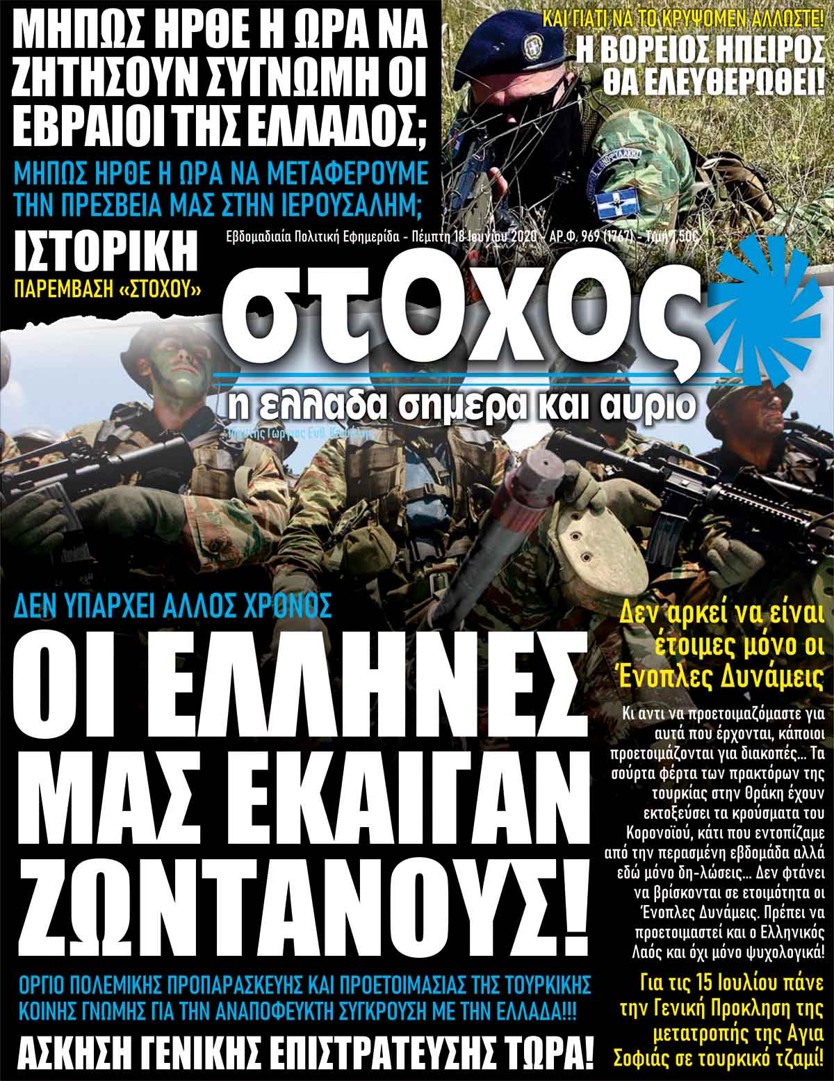 2 σχόλια στο “«ΟΙ ΕΛΛΗΝΕΣ ΜΑΣ ΕΚΑΙΓΑΝ ΖΩΝΤΑΝΟΥΣ»! Οι τούρκοι προετοιμάζουν την κοινή γνωμη… ΑΣΚΗΣΗ ΓΕΝΙΚΗΣ ΕΠΙΣΤΡΑΤΕΥΣΗΣ ΤΩΡΑ… Εφημερίδα «Στόχος» – Πέμπτη 18 Ιουνίου 2020 – ΑΡ.Φ. 969 (1767)”