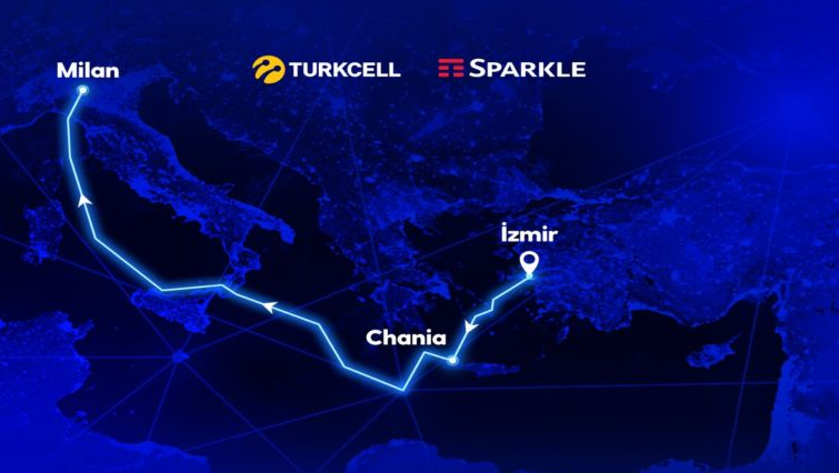Χάρτης ψηφιακής διασύνδεσης Σμύρνης-Χανίων μετά την υπογραφή της συμφωνίας. Πηγή και λεπτομέρειες στο submarinenetworks.com