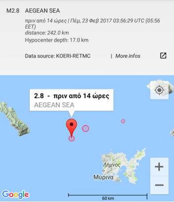 Tρείς ασθενείς σεισμικές δονήσεις σημειώθηκαν στη περιοχή μεταξύ του ακρωτηρίου του Άθου και ΒΑ της Λήμνου.