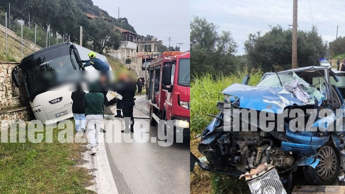 «Μεσημεριανές ώρες χθες 17 Μαρτίου 2026, στην Επαρχιακή Οδό Αργασίου–Βασιλικού στη Ζάκυνθο, αυτοκίνητο Ι.Χ. που οδηγούσε 53χρονος αλλοδαπός, συγκρούσθηκε πλαγιομετωπικά με λεωφορείο Δ.Χ. που οδηγούσε 37χρονος ημεδαπός.