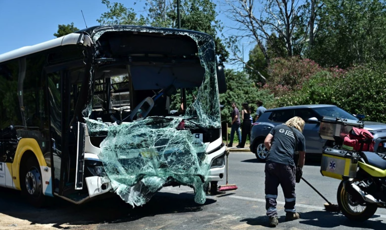 Οι τζαμαρίες θρυμματίστηκαν, ενώ δεκάδες ήταν οι τραυματίες επιβάτες, που προσπάθησαν με κάθε τρόπο να βγουν έξω από το λεωφορείο.