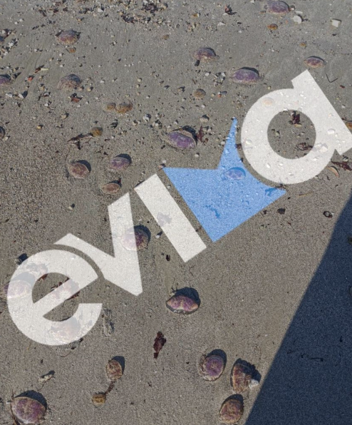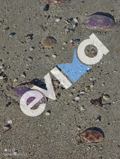 Σύμφωνα με το ρεπορτάζ του evima.gr, χιλιάδες μέδουσες, μωβ με πλοκάμια έχει ξεβράσει η θάλασσα στην παραλία της Λιανής Άμμου και στην παραλία Κουρέντι στην Χαλκίδα.
