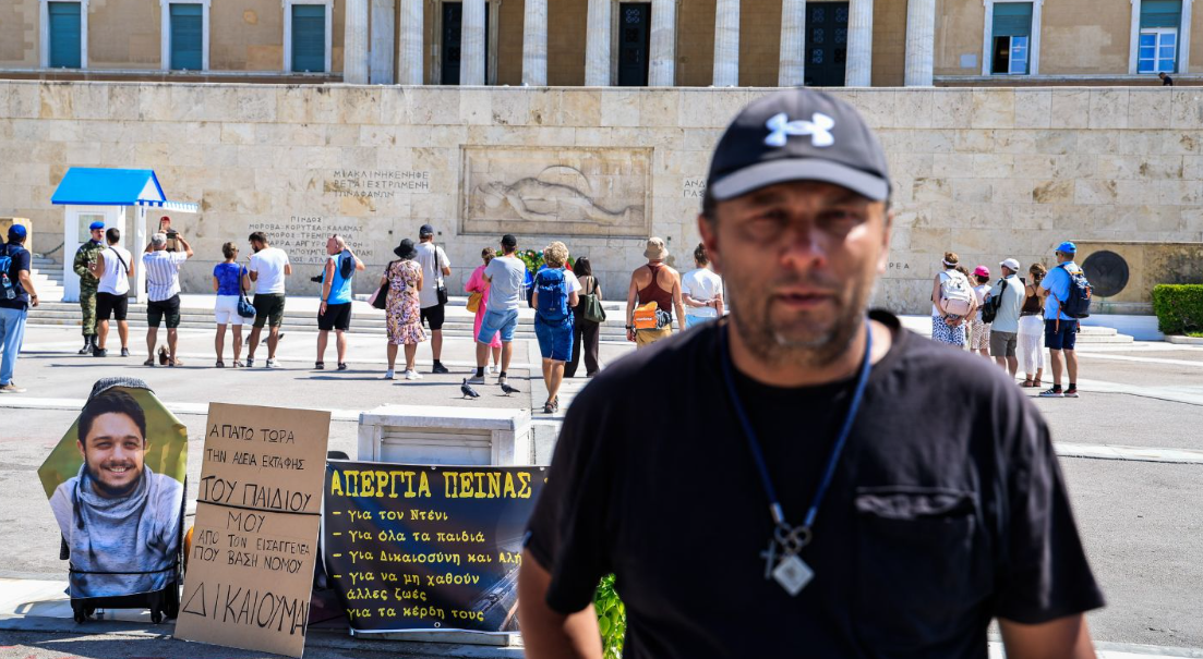 Τα παιδιά αποφάσισαν να επισκεφθούν τον απεργό πείνας Πάνο Ρούτσι στην Πλατεία Συντάγματος και να του προσφέρουν ένα σχέδιο που φιλοτέχνησαν με τη μορφή του γιου του που χάθηκε τόσο άδικα στη σιδηροδρομική τραγωδία των Τεμπών.