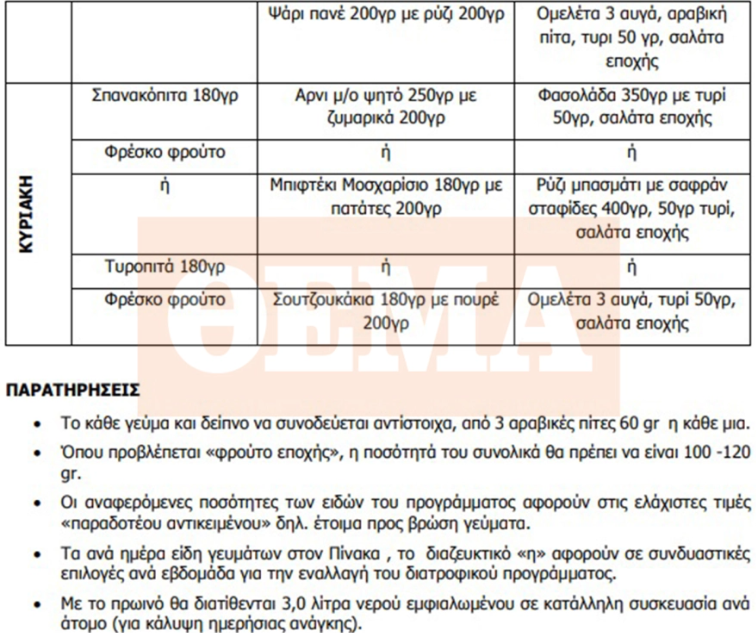 Σύμφωνα με τα δεδομένα που έχει το protothema.gr η διατροφή τους ορίζεται από συμφωνία πλαίσιο η οποία συνήφθη το 2021 επί υπουργείας Νότη Μηταράκη και λήγει το ερχόμενο Φθινόπωρο.