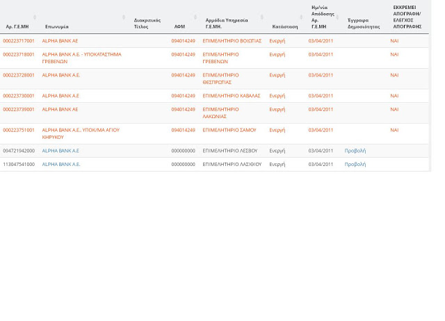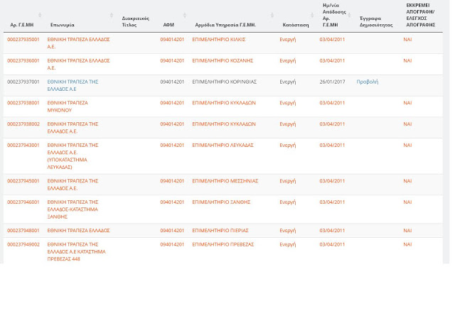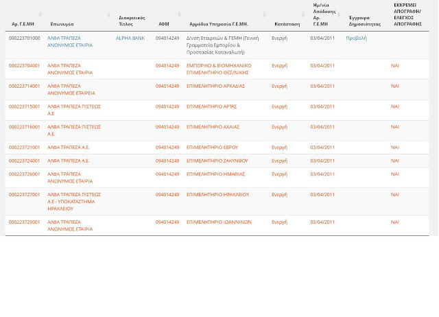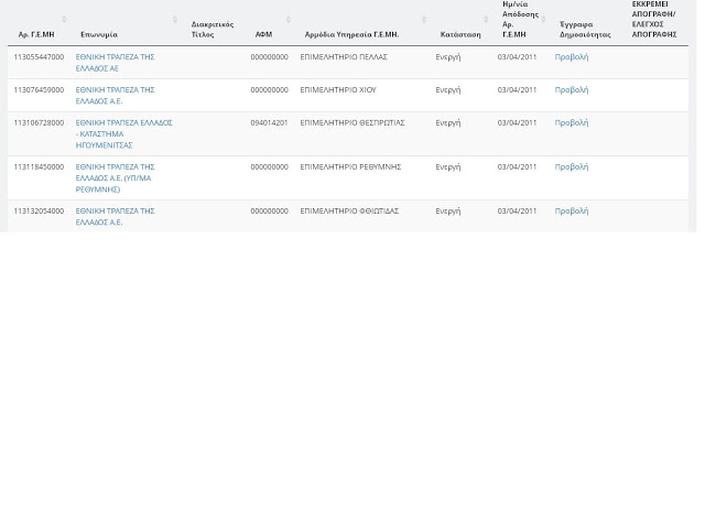 Το 2010 και επί κυβερνήσεως ΠΑΣΟΚ ψηφίστηκε ο νόμος 3853 και της Κ.Υ.Α. Κ1-802/23-3-11 (ΦΕΚ 470 Β) καθορίστηκε ένας ενιαίος αριθμός για όλες τις επιχειρήσεις της χώρας με τον όρο ΓΕΜΗ (Γενικό Εμπορικό μητρώο) ο οποίος είναι μοναδιαίος για κάθε νομική επιχειρηματική οντότητα πλην όμως από ότι φαίνεται των τραπεζών μια και όπως θα δείτε παρακάτω τα αποκαλυπτικά έγγραφα συγκεκριμένα υποκαταστήματα τραπεζών σε συγκεκριμένες περιοχές της χώρας έχουν ξεχωριστό ΓΕΜΗ..
