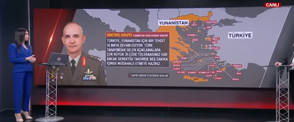 Σε εκπομπή του CNN Turk, αναλυτές εξέφρασαν την άποψη ότι «η Ελλάδα μας απειλεί με όπλα», τονίζοντας όμως ότι η Τουρκία διαθέτει πλέον δικούς της πυραύλους με βεληνεκές 1.000 χιλιομέτρων που «θα φτάσουν και τα 5.000». Στην ίδια εκπομπή, χαρακτηρίστηκαν ως «σκανδαλώδεις» οι δηλώσεις του Έλληνα Αρχηγού ΓΕΕΘΑ, Δημήτρη Χούπη, που αναφέρθηκε στην Τουρκία ως απειλή και δήλωσε ότι η Ελλάδα μπορεί να αντιδράσει οπουδήποτε εντός πέντε λεπτών.