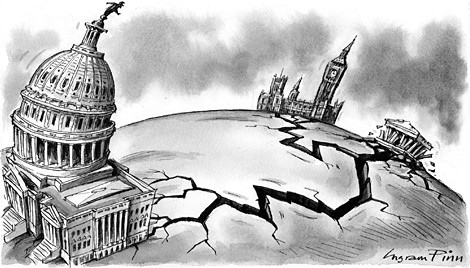 Οι ευρωπαίοι «ελίτ» χρησιμοποιούν την Ελλάδα για να πείσουν τις χειραγωγούμενες μάζες, (‘sheeple’ = άνθρωποι – πρόβατα) ότι αν το ελληνικό πρόβλημα δεν λυθεί, η Νότια Ευρώπη θα χρεοκοπήσει, κάτι που θα προκαλέσει την κατάρρευση ολόκληρου του ευρωπαϊκού χρηματοπιστωτικού συστήματος και κατά συνέπεια την πτώχευση του συνόλου της ευρωπαϊκής οικονομίας.
