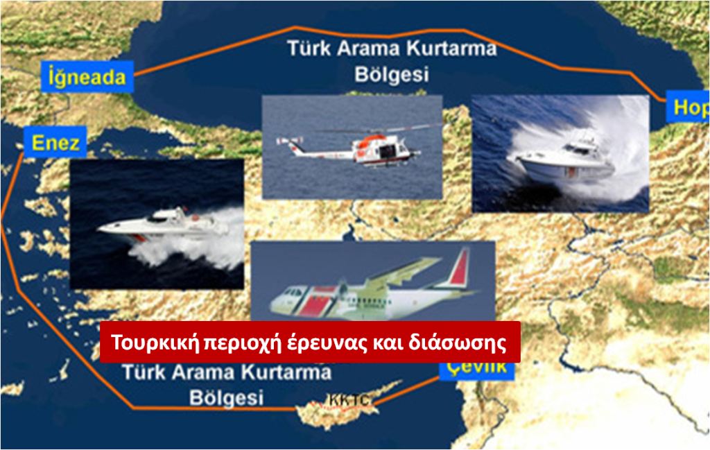 Εκτός και υπάρχει σιωπηρή αποδοχή της τουρκικής απαίτησης για διαμοιρασμό του Αιγαίου στις αποστολές SAR, σύμφωνα την δική τους εκδοχή περί αρμοδιότητας δυτικά του 25ου Μεσημβρινού, όπως φαίνεται στην φωτό που δημοσιεύουμε στην α’σελίδα…