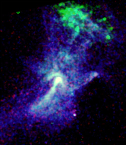 Το εντυπωσιακό πράσινο νέφος κοντά στην κορυφή της εικόνας οφείλεται σε ένα αέριο πολλών εκατομμυρίων βαθμών Κελσίου. Αυτό το αέριο, πιθανώς να είναι ένα κατάλοιπο της έκρηξης σουπερνόβα που σχετίζεται με τη δημιουργία του πάλσαρ, μπορεί να έχει θερμανθεί από συγκρούσεις με σωματίδια υψηλής ενέργειας που παράγονται από το πάλσαρ.