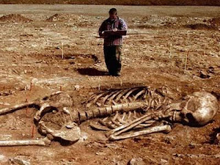 Τα οστά που βρέθηκαν ανήκουν σε γιγάντια πλάσματα, που μοιάζουν ελάχιστα με τους ανθρώπους. Ο επικεφαλής της ερευνητικής ομάδας πιστεύει πως ίσως να πρόκειται για «επισκέπτες» από άλλο πλανήτη, που πέθαναν εξαιτίας κάποιας καταστροφής.