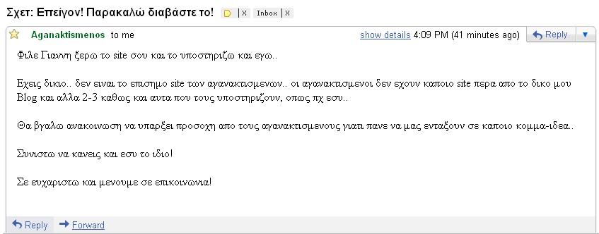 http://katohika.gr/2011/06/03/real-democracygr/ Φιλε μου ο σημερινός εχθρός σου είναι η παραπληροφόρηση των μεγάλων καναλιών. Αν είδες κάτι που σε άγγιξε , κάτι που το θεωρείς σωστό, ΜΟΙΡΆΣΟΥ ΤΟ ΤΩΡΑ με ανθρώπους που πιστεύεις οτι θα το αξιολογήσουν και θα επωφεληθούν απο αυτό! Μην μένεις απαθής. Πρώτα θα νικήσουμε την ύπνωση και μετά ΟΛΟΙ ΜΑΖΙ τα υπόλοιπα.