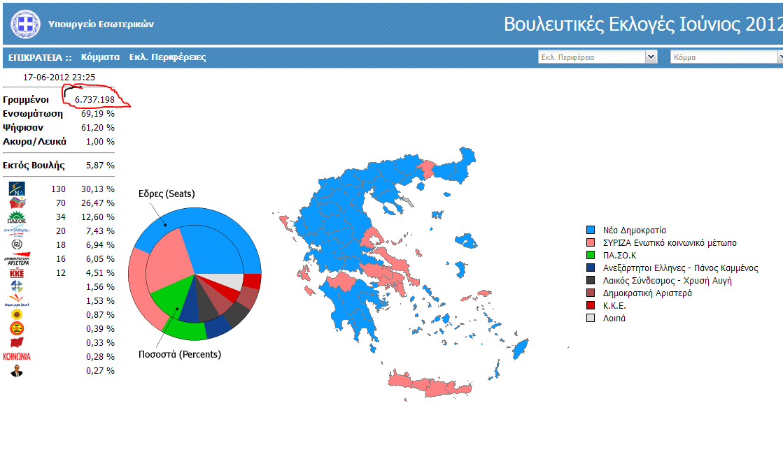 ΚΑΙ ΜΕ ΠΟΣΟΣΤΟ ΑΠΟΧΗΣ 40% ΨΗΦΗΣΑΝ ΔΗΛΑΔΗ ΜΟΝΟ 4 ΕΚΑΤΟΜΜΥΡΙΑ!!… ΔΗΛΑΔΗ ΛΟΓΟ ΤΗΣ ΑΠΟΓΡΑΦΗΣ ΤΟΥ 2011 ΑΠΟΚΛΕΙΣΤΕΙΚΑΝ ΑΠΟ ΤΗΝ ΨΗΦΟΦΟΡΙΑ ΣΕ ΣΧΕΣΗ ΜΕ ΤΙΣ ΕΚΛΟΓΕΣ ΤΟΥ ΜΑΪΟΥ (9.6 ΕΚΑΤΟΜΜΥΡΙΑ ΕΓΓΕΓΡΑΜΕΝΟΙ), 3 ΕΚΑΤΟΜΜΥΡΙΑ ΕΛΛΗΝΕΣ!!… ΕΠΕΙΔΗ ΠΟΛΛΟΙ ΑΞΙΟΠΡΕΠΗΣ ΕΛΛΗΝΕΣ ΔΕΝ ΔΕΧΤΗΚΑΝ ΤΗΝ ΧΟΥΝΤΟΑΠΟΓΡΑΦΗ ΤΟΥΣ ΟΠΟΥ ΣΕ…