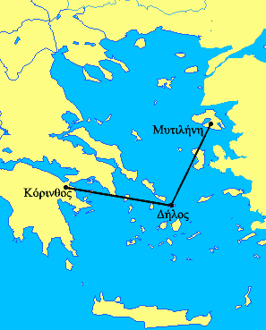 Από το ιερό νησί της Δήλου ισαπέχουν: Αθήνα-Καρδάμυλα Χίου (800 στάδια), Κόρινθος-Μυτιλήνη (1.188 στάδια), Σμύρνη-Θήβα (1.080 στάδια), Σπάρτη-Πέργαμος (1.360 στάδια), Αργος-Μυκήνες (1.210 στάδια), Ιδαίον Αντρον-Τροφώνιο Μαντείο (1.296 στάδια), Ρέθυμνο-Δύκτινα-Κνωσός (1.256 στάδια), Ασκληπιείο Κω-Ασκληπιείο Επιδαύρου (1.0