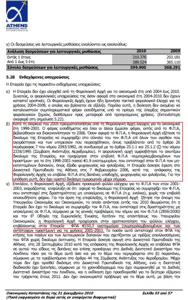 επισυνάπτω την σελίδα 53 και 54 της Έκθεσης Ισολογισμού του Διεθνούς Αερολιμένα Αθηνών του 2010.Αν συχεχίσει να αρνείται την πληρωμή , να μην