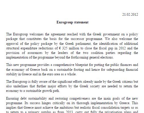 Προειδοποιεί επίσης ότι δύο από τις τρεις βασικές αρχές του νέου προγράμματος είναι αυτοαναιρούμενες. Επισημαίνει ότι η λιτότητα θα οδηγήσει σε αύξηση του χρέους, με παράλληλη σημαντική αποδυνάμωση της οικονομίας. Οι F.T. σημειώνουν: «Η παρατεταμένη οικονομική στήριξη με κατάλληλους όρους από τον θεσμικό τομέα μπορεί να κριθεί απαραίτητη», αναφέρει η έκθεση. «Βάσει ενός σεναρίου που περιλαμβάνει η έκθεση, το ελληνικό χρέος θα μειωθεί πολύ λιγότερο από όσο υπολογίζεται, στο 160% του ΑΕΠ μέχρι το 2020, έναντι στόχου για 120% του ΑΕΠ. Σε αυτήν την περίπτωση, η Ελλάδα θα χρειαστεί πακέτο στήριξης 245 δισ. ευρώ, που ξεπερνά κατά πολύ τα 170 δισ ευρώ που προβλέπει η ευρωζώνη» «Οι ελληνικές αρχές μπορεί να μην έχουν τη δυνατότητα να προχωρήσουν στις διαρθρωτικές μεταρρυθμίσεις και στην προσαρμογή της πολιτικής με τον ρυθμό που οραματίζεται το βασικό σενάριο», αναφέρει η έκθεση στο πλαίσιο του απαισιόδοξου σεναρίου και συμπληρώνει: «Ορισμένοι οικονομικοί παράγοντες μπορεί να αντισταθούν στη μεγαλύτερη ευελιξία των μισθών, η απελευθέρωση της αγοράς προϊόντων και υπηρεσιών ενδεχομένως να συνεχίσει να αντιμετωπίζει σθεναρές αντιδράσεις από τις ομάδες συμφερόντων, οι μεταρρυθμίσεις για το επιχειρηματικό περιβάλλον ίσως βαλτώσουν από τις γραφειοκρατικές αναβολές». Επισημαίνεται ότι δεν είναι μόνο το απαισιόδοξο σενάριο που αφήνει ανοιχτό το ενδεχόμενο για νέο πακέτο στήριξης της Ελλάδας. Το βασικό σενάριο για τη χώρα αναφέρει ότι θα χρειαστεί επιπλέον 50 δισ. ευρώ στο τέλος της δεκαετίας. Η λίστα όσων βγήκαν εκτός πορείας στο ελληνικό πρόγραμμα είναι μεγάλη. Η ανακεφαλαιοποίηση των ελληνικών τραπεζών αρχικά είχε εκτιμηθεί ότι θα στοιχίσει 30 δισ. ευρώ, ενώ τώρα ανέρχεται στα 50 δισ. ευρώ. Το πρόγραμμα ιδιωτικοποιήσεων που αρχικά είχε στόχο 50 δισ. ευρώ τώρα αναβάλλεται για μία 5ετία με στόχο 30 δισ. ευρώ, αναφέρεται στο έγγραφο.