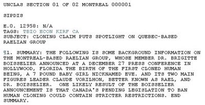 Τo 1997, ο Ραέλ, ίδρυσε με μεγάλη επιτυχία την CLONAID, την πρώτη εταιρία που προσφέρει κλωνοποίηση σε ανθρώπινα όντα (www.clonaid.com). Αυτή η εταιρία εξηγεί πως η σημερινή τεχνολογία κλωνοποίησης είναι το πρώτο βήμα στην αναζήτηση για την αιώνια ζωή. ’’ Όταν θα μπορούμε να κλωνοποιούμε ακριβή αντίγραφα του εαυτού μας, το επόμενο βήμα θα είναι να μεταφέρουμε τη μνήμη μας και την προσωπικότητά μας στους νέους κλωνοποιημένους εγκεφάλους μας, κάτι το οποίο θα μας επιτρέψει να ζούμε πραγματικά για πάντα.’’