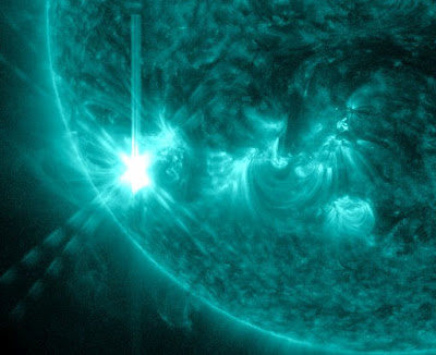 Η Ηλιακή δραστηριότητα έχει αυξηθεί:Η κηλίδα AR1532  είναι ενεργή και παράγει M-class ηλιακές εκλάμψεις όπως η M6-έκρηξη που έγινε στις 28 Ιουλίου (2056 UT), και παράγει μια φωτεινή λάμψη ακραίας υπεριώδης ακτινοβολίας, που παρουσιάζεται εδώ σε ένα στιγμιότυπο από το Ηλιακό Παρατηρητήριο Dynamics: