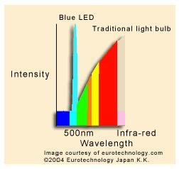 • Οι εκπεμπόμενες συχνότητες στο φάσμα τού μπλε και οι υπεριώδεις