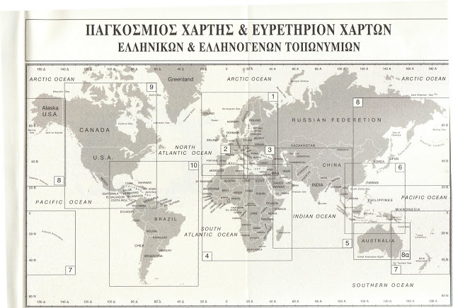 Σκεφτήκαμε να δημοσιεύσουμε στο blog μας,τους χάρτες του κ. Λάζαρη,που δείχνουν τα ελληνικά τοπωνύμια σε όλη τη Γη καθώς και τα τοπωνύμια σε ελληνική-αγγλική και τις ακριβείς συντεταγμένες,πιστεύοντας οτι έτσι θα συμβάλλουμε στην έρευνα για την ιστορική αλήθεια που αφορά την πανάρχαια αυτή ελληνική αυτοκρατορία και η οποία αποκρύπτεται απο τον ελληνικό λαό και την παγκόσμια επιστημονική κοινότητα,απο τους γνωστούς παγκοσμιοποιητές.Αυτοί οι “κύριοι” γνωστοί τραπεζίτες συγκεκριμένης εθνικότητας,το γνωρίζουν εδω και τουλάχιστον 3 αιώνες.Φροντίζουν όμως με “κατευθυνόμενους” ιστορικούς και χαλκευμένες έρευνες να το αποκρύπτουν και να περιορίζουν τον ελληνισμό στην περιοχή της Ελλάδας.Αυτό που μας ώθησε ήταν η δήλωση κάποιου συγγραφέα οτι οι δρυϊδες της Γαλλίας λατρεύουν σαν γενάρχη τους τον Ηρακλή.Κανείς όμως δεν θα το διδαχτεί αυτό στα ελληνικά σχολεία όπως και εμείς άλλωστε.Κανένα παιδί στο σχολείο δεν έμαθε οτι η Μασσαλία είναι αποικία των Φωκαέων,απο την Μικρά Ασία(6ος αιώνας π.Χ).Κανείς δεν έμαθε για τα δεκάδες ελληνικά πανεπιστήμια που ήταν διάσπαρτα στην Ευρώπη τον 7ο αιώνα π.Χ,σύμφωνα με δήλωση του κ. Γεωργακόπουλου,καθηγητή της Ιστορίας της Επιστήμης(δείτε εδώ όλη την εκπομπή όπου έκανε τις δηλώσεις για τα πανεπιστήμια ο κ. Γεωργακόπουλος).
