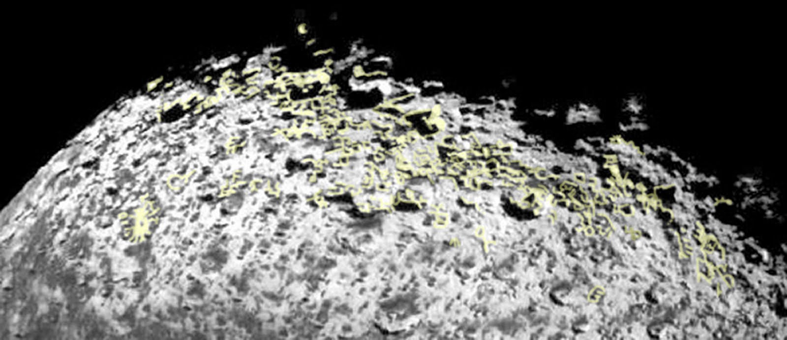 Εδώ είναι ένας τοπογραφικός χάρτης της επιφάνειας του Ιαπετού που λήφθηκε το Μάιο του 2008. Ρίξτε μια ματιά μόνοι σας. Όλες αυτές τις φωτογραφίες μπορείτε να τις βρείτε στην NASA.